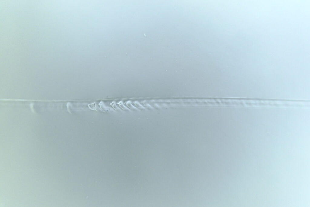 Besonders bei der Rekonstruktion der Bewegungsrichtung von Fahrzeugen oder Anstoßpartnern können Kratzspuren wertvolle Hinweise liefern. Ein von uns durchgeführter Modellversuch, bei dem mit einem stumpfen Gegenstand über ein foliertes Blechteil gekratzt wurde, zeigt die charakteristischen Eigenschaften solcher Beschädigungen. Die dabei entstandenen Spuren verdeutlichen, dass sich anhand der Materialverschiebungen der Folie Rückschlüsse auf die Bewegungsrichtung ziehen lassen.